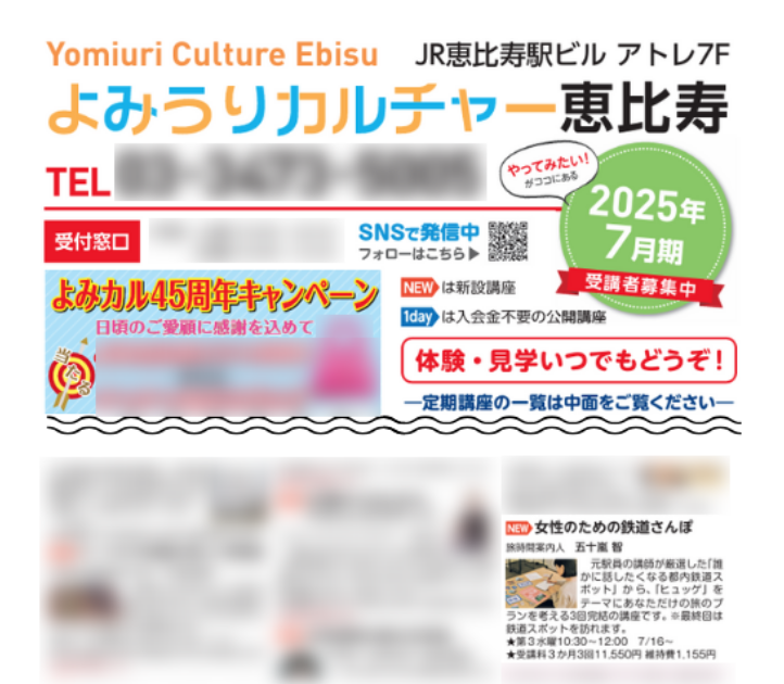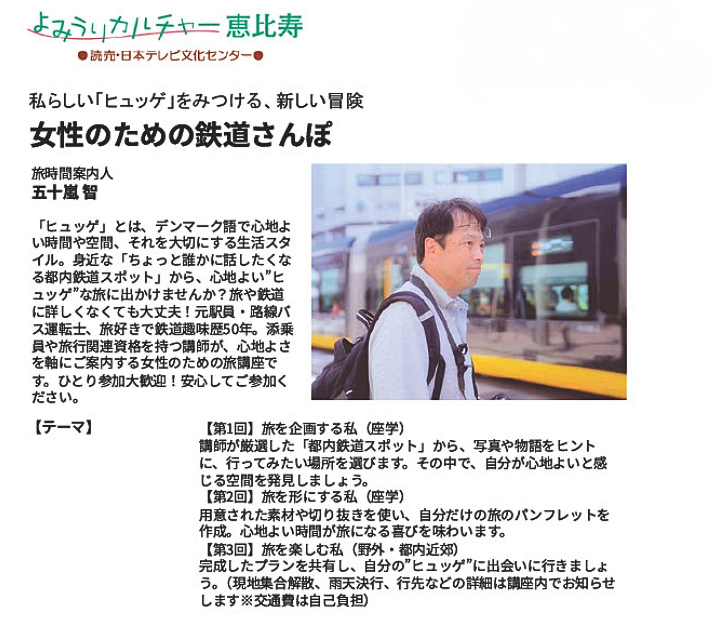 『よみうりカルチャーセンター』での”旅”や”身近な鉄道“を通じて…